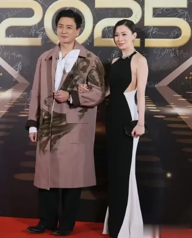 45岁的黄宗泽这次也丝毫不输气场,身穿宽松的印花长风衣外套,内搭蝴蝶结装饰的衬衫,休闲中带着几分精致,个性又不失帅气。两人手挽着手缓缓走上红毯,时而对视微笑,时而挥手致意,互动间满是默契,不少网友调侃:“这俩人同框太有CP感了,建议直接二搭拍爱情剧!”